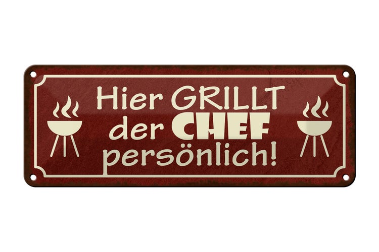 - TitelBlechschild Spruch 27x10cm hier grillt der Chef persönlich Dekoration [ORIGINAL BLECHSCHILD von FEMER]