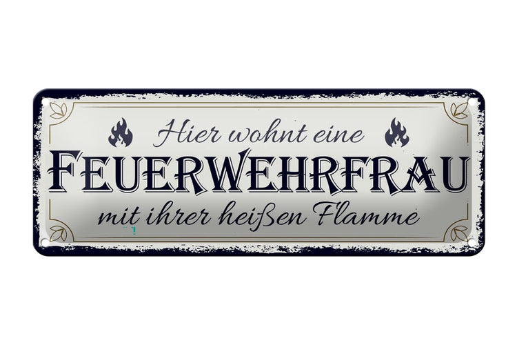 - TitelBlechschild Spruch 27x10cm Hier wohnt eine Feuerwehrfrau Dekoration [ORIGINAL BLECHSCHILD von FEMER]