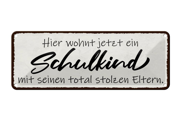 - TitelBlechschild Spruch 27x10cm hier wohnt jetzt Schulkind mit Dekoration [ORIGINAL BLECHSCHILD von FEMER]