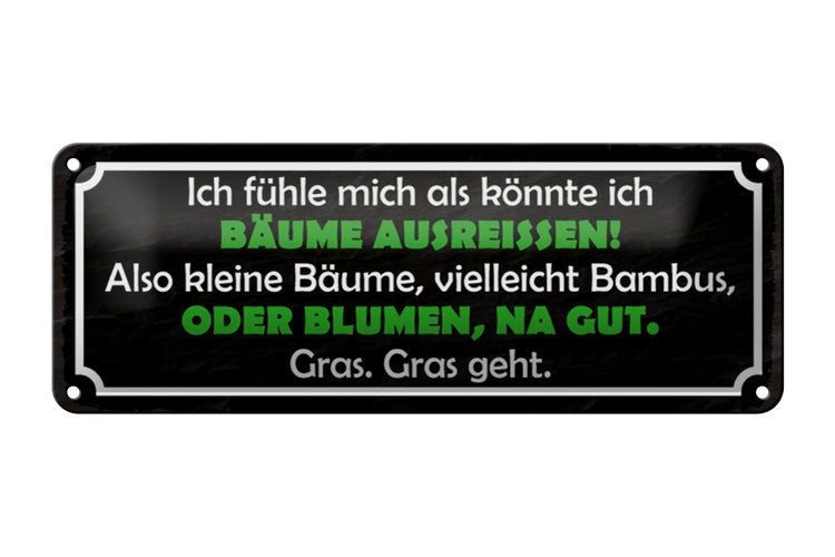 - TitelBlechschild Spruch 27x10cm Ich fühle mich als könnte ich Bäume ausreissen [ORIGINAL BLECHSCHILD von FEMER]