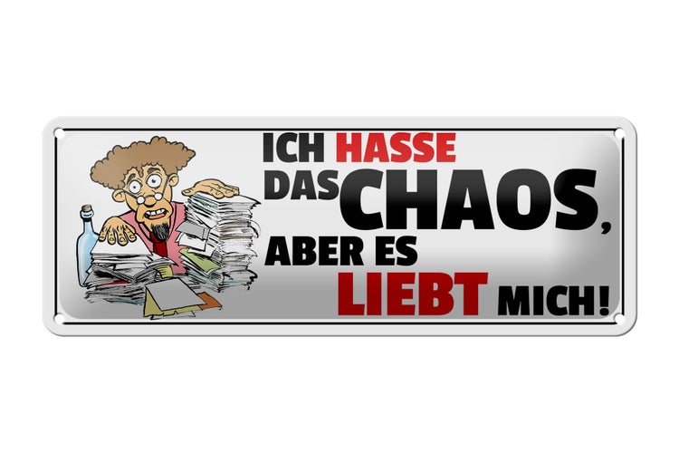 - TitelBlechschild Spruch 27x10cm Ich hasse das Chaos Dekoration [ORIGINAL BLECHSCHILD von FEMER]