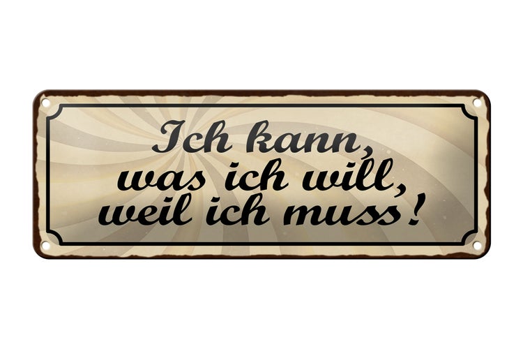 - TitelBlechschild Spruch 27x10cm ich kann was ich will weil muss Dekoration [ORIGINAL BLECHSCHILD von FEMER]