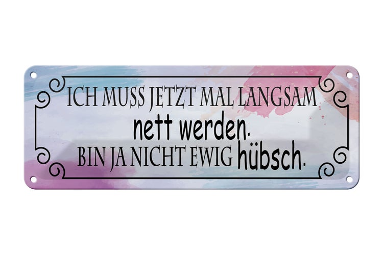 - TitelBlechschild Spruch 27x10cm ich muss mal langsam nett werden Dekoration [ORIGINAL BLECHSCHILD von FEMER]
