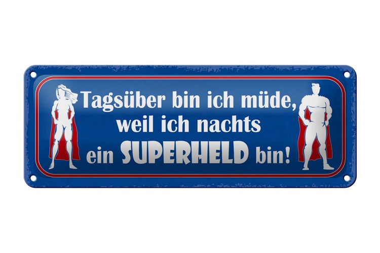 - TitelBlechschild Spruch 27x10cm ich nachts ein Superheld bin Dekoration [ORIGINAL BLECHSCHILD von FEMER]
