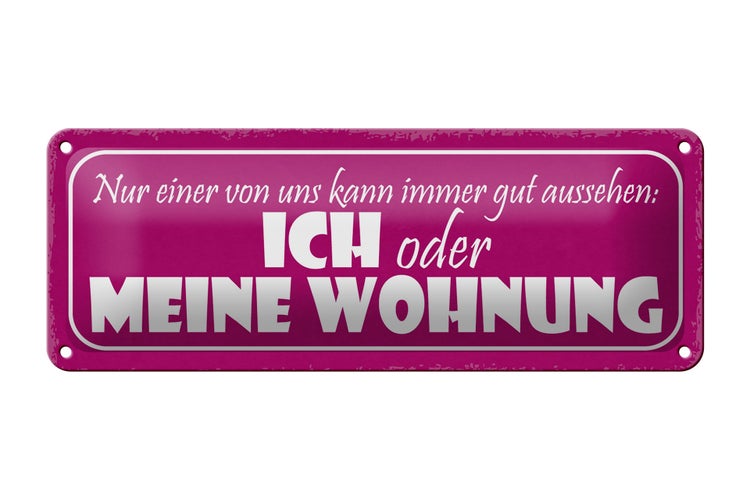 Blechschild Spruch 27x10cm ich oder meine Wohnung gut Metal Dekoration