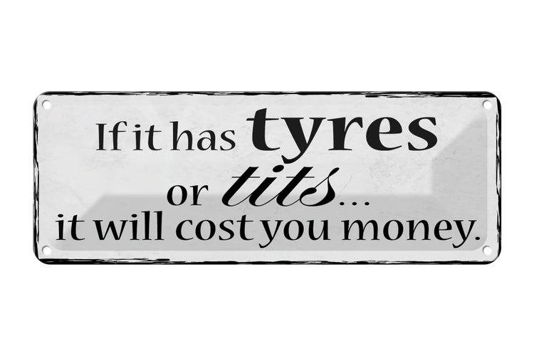 Blechschild Spruch 27x10cm if has tyres or tits will cost Dekoration