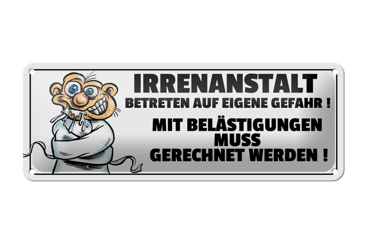 - TitelBlechschild Spruch 27x10cm Irrenanstalt Betreten Gefahr Dekoration [ORIGINAL BLECHSCHILD von FEMER]