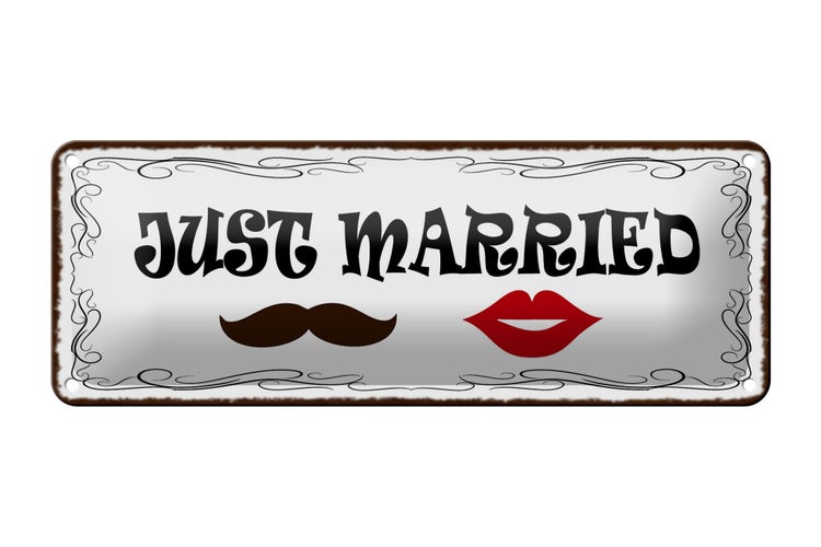 - TitelBlechschild Spruch 27x10cm Just married Ehepaar Dekoration [ORIGINAL BLECHSCHILD von FEMER]