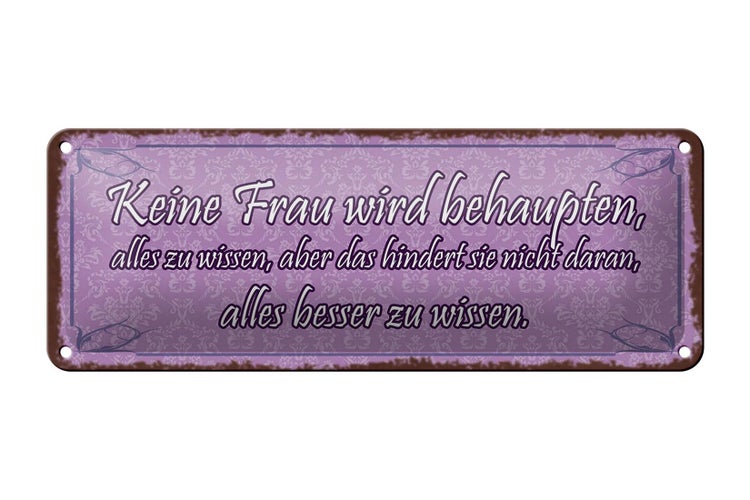 - TitelBlechschild Spruch 27x10cm keine Frau behaupte alles wissen Dekoration [ORIGINAL BLECHSCHILD von FEMER]