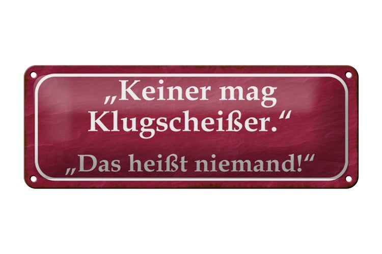 - TitelBlechschild Spruch 27x10cm keiner mag Klugscheißer Dekoration [ORIGINAL BLECHSCHILD von FEMER]