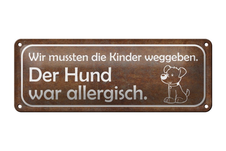 - TitelBlechschild Spruch 27x10cm Kinder weggeben Hund allergisch Dekoration [ORIGINAL BLECHSCHILD von FEMER]