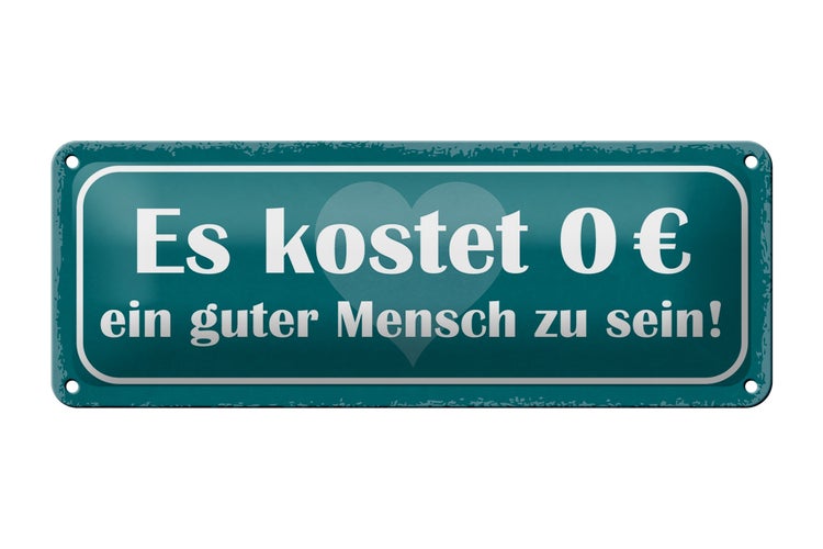 - TitelBlechschild Spruch 27x10cm kostet 0€ guter Mensch zu sein Dekoration [ORIGINAL BLECHSCHILD von FEMER]