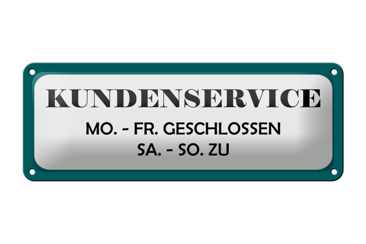 - TitelBlechschild Spruch 27x10cm Kundenservice Mo-Fr geschlossen [ORIGINAL BLECHSCHILD von FEMER]