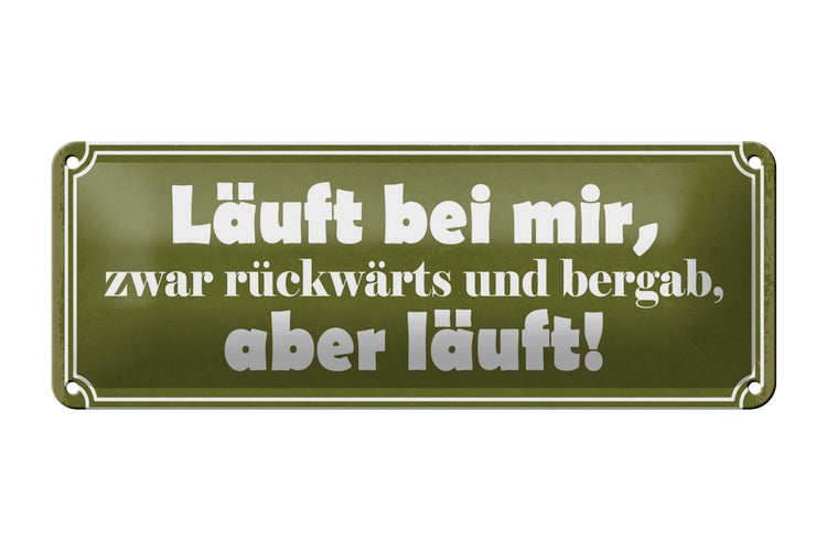 Blechschild Spruch 27x10cm läuft rückwärts und bergab aber Dekoration