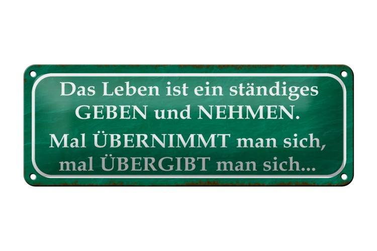 - TitelBlechschild Spruch 27x10cm Leben ist ständiges Geben Nehmen Dekoration [ORIGINAL BLECHSCHILD von FEMER]