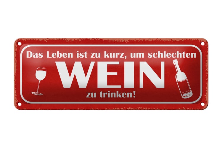 Blechschild Spruch 27x10cm Leben kurz um schlechten Wein Dekoration