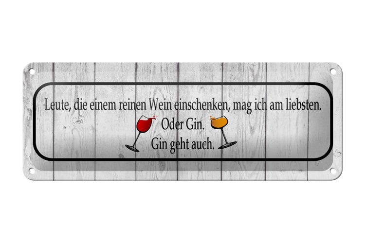 Blechschild Spruch 27x10cm Leute die einem Wein einschenken Dekoration