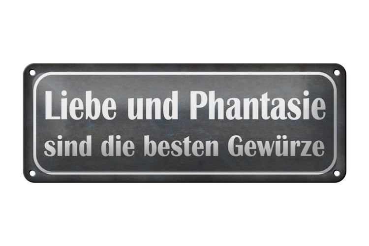 - TitelBlechschild Spruch 27x10cm Liebe Phantasie beste Gewürze Dekoration [ORIGINAL BLECHSCHILD von FEMER]
