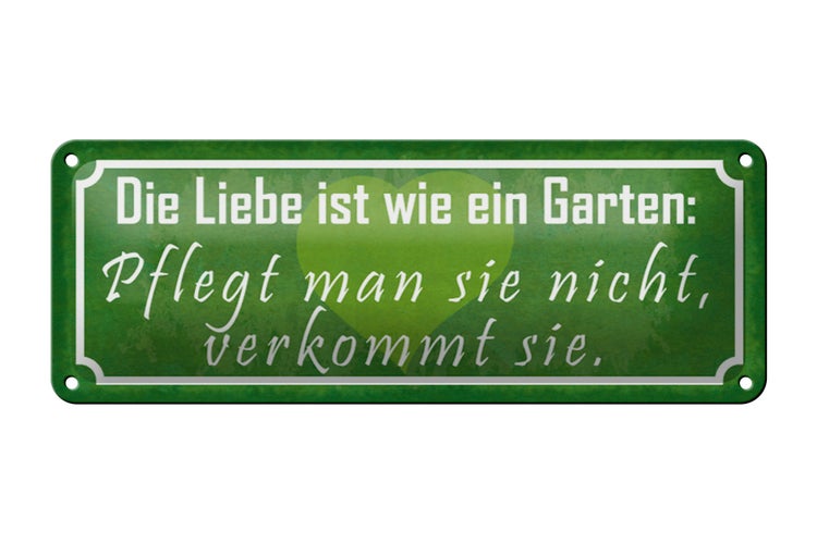 - TitelBlechschild Spruch 27x10cm Liebe wie ein Garten pflegt man Dekoration [ORIGINAL BLECHSCHILD von FEMER]