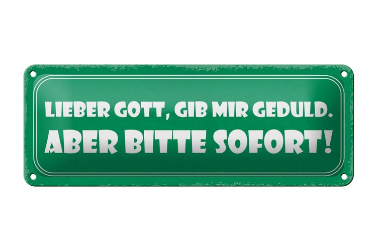 - TitelBlechschild Spruch 27x10cm lieber Gott gib Geduld sofort Dekoration [ORIGINAL BLECHSCHILD von FEMER]
