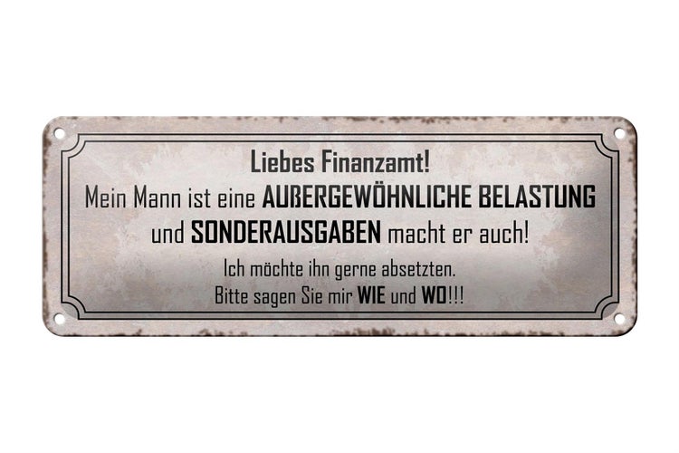 - TitelBlechschild Spruch 27x10cm Liebes Finanzamt mein Mann ist Dekoration [ORIGINAL BLECHSCHILD von FEMER]