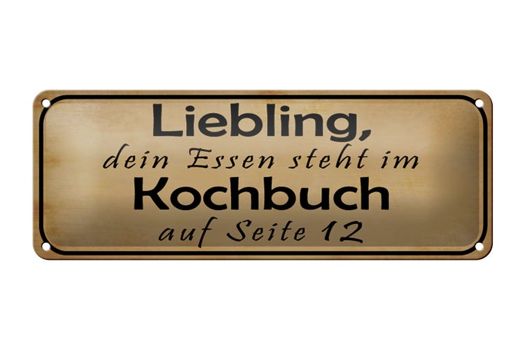 - TitelBlechschild Spruch 27x10cm Liebling das Essen steht im Kochbuch auf Seite 12 [ORIGINAL BLECHSCHILD von FEMER]
