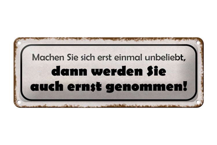 - TitelBlechschild Spruch 27x10cm machen Sie sich erst unbeliebt Dekoration [ORIGINAL BLECHSCHILD von FEMER]