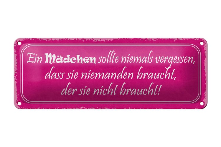 - TitelBlechschild Spruch 27x10cm Mädchen sollte niemals vergessen Dekoration [ORIGINAL BLECHSCHILD von FEMER]