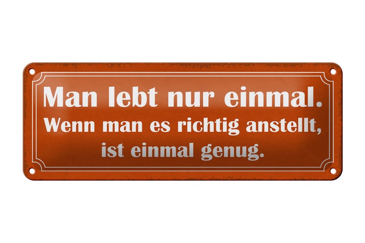 - TitelBlechschild Spruch 27x10cm man lebt nur einmal ist genug Dekoration [ORIGINAL BLECHSCHILD von FEMER]