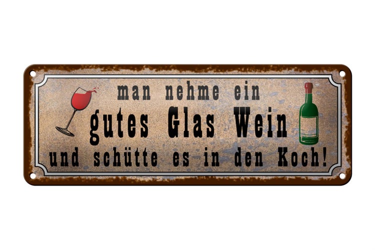 - TitelBlechschild Spruch 27x10cm man nehme gutes Glas Wein und Dekoration [ORIGINAL BLECHSCHILD von FEMER]