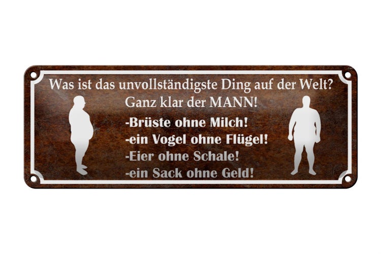 - TitelBlechschild Spruch 27x10cm MANN Brüste ohne Milch Eier ohne Dekoration [ORIGINAL BLECHSCHILD von FEMER]