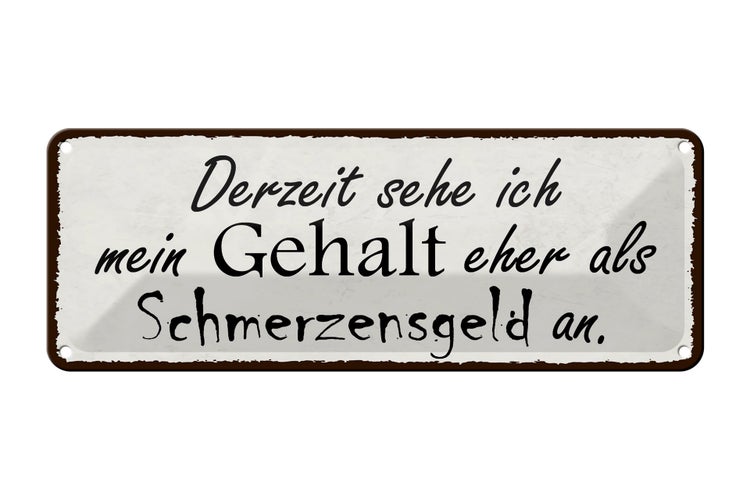 Blechschild Spruch 27x10cm mein Gehalt eher Schmerzensgeld Dekoration