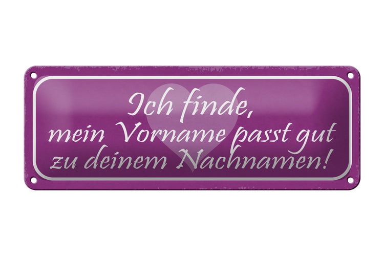 Blechschild Spruch 27x10cm mein Vorname passt gut zu deinem Dekoration