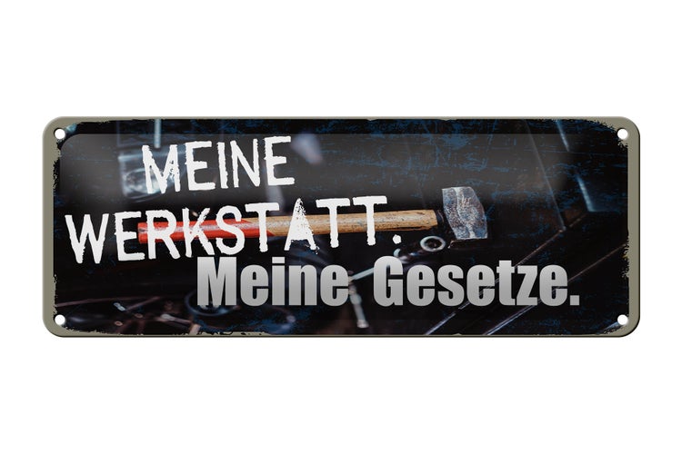 Blechschild Spruch 27x10cm meine Werkstatt meine Gesetze Dekoration