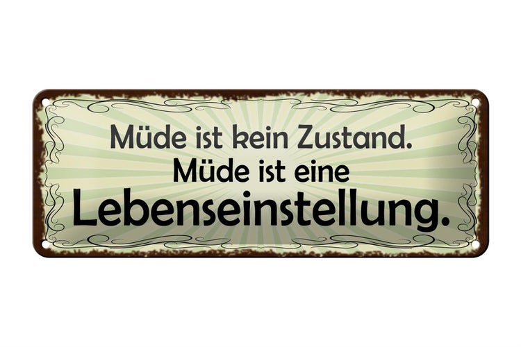 - TitelBlechschild Spruch 27x10cm Müde ist eine Lebenseinstellung Dekoration [ORIGINAL BLECHSCHILD von FEMER]
