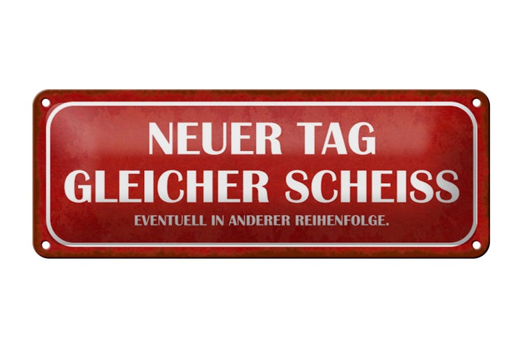 - TitelBlechschild Spruch 27x10cm neuer Tag gleicher Scheiss rotes Schild [ORIGINAL BLECHSCHILD von FEMER]