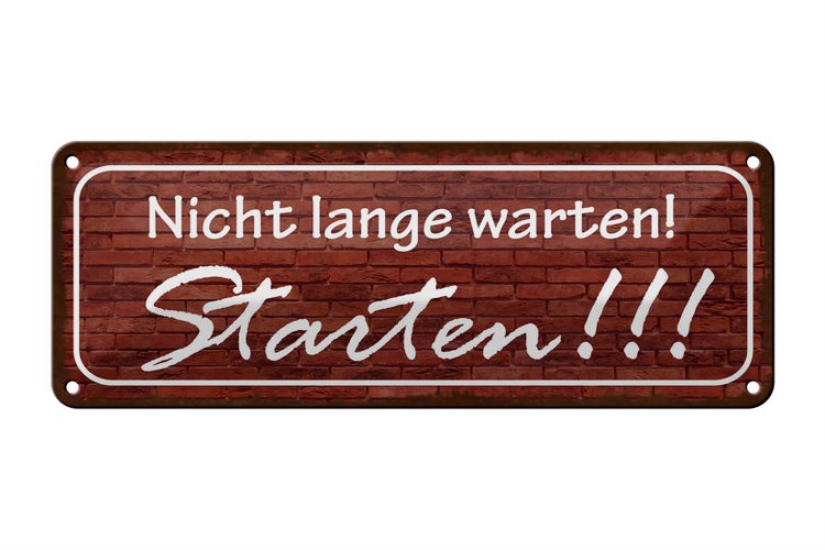 Blechschild Spruch 27x10cm nicht lange warten Starten Dekoration