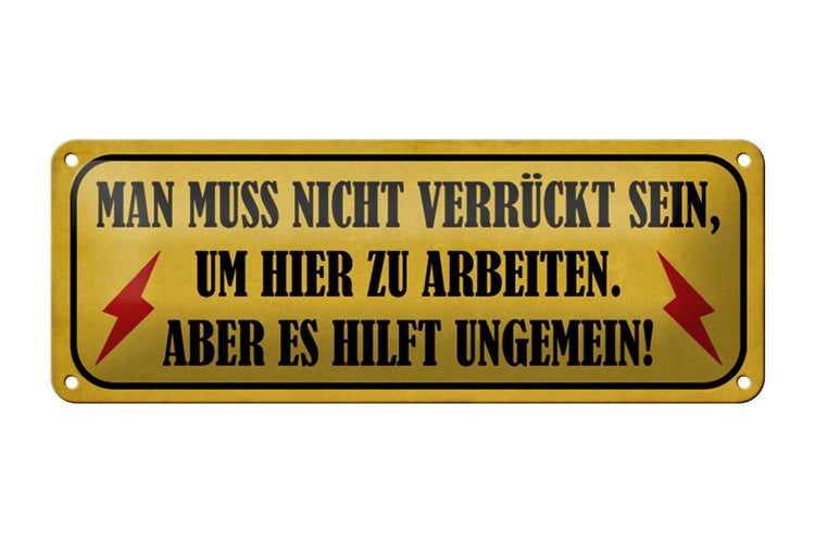 - TitelBlechschild Spruch 27x10cm nicht verrückt um hier arbeiten Dekoration [ORIGINAL BLECHSCHILD von FEMER]