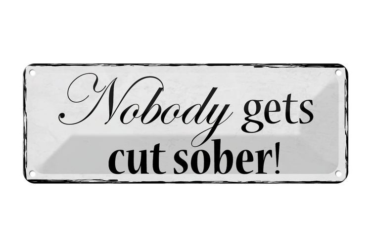 - TitelBlechschild Spruch 27x10cm Nobody gets cut sober Dekoration [ORIGINAL BLECHSCHILD von FEMER]