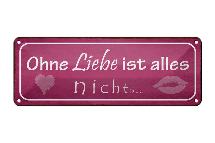 - TitelBlechschild Spruch 27x10cm ohne Liebe ist alles nichts Kuss Dekoration [ORIGINAL BLECHSCHILD von FEMER]
