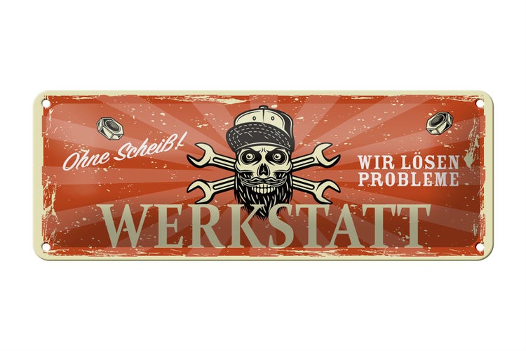 - TitelBlechschild Spruch 27x10cm ohne Scheiß Werkstatt lösen Probleme [ORIGINAL BLECHSCHILD von FEMER]