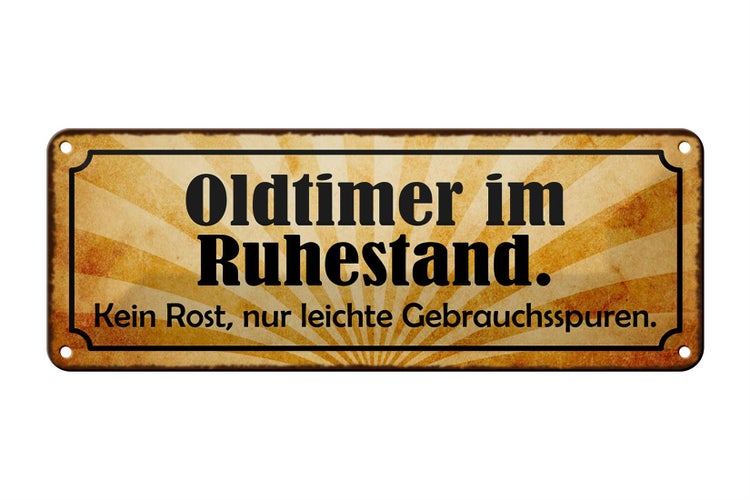 - TitelBlechschild Spruch 27x10cm Oldtimer im Ruhestand kein Rost Dekoration [ORIGINAL BLECHSCHILD von FEMER]