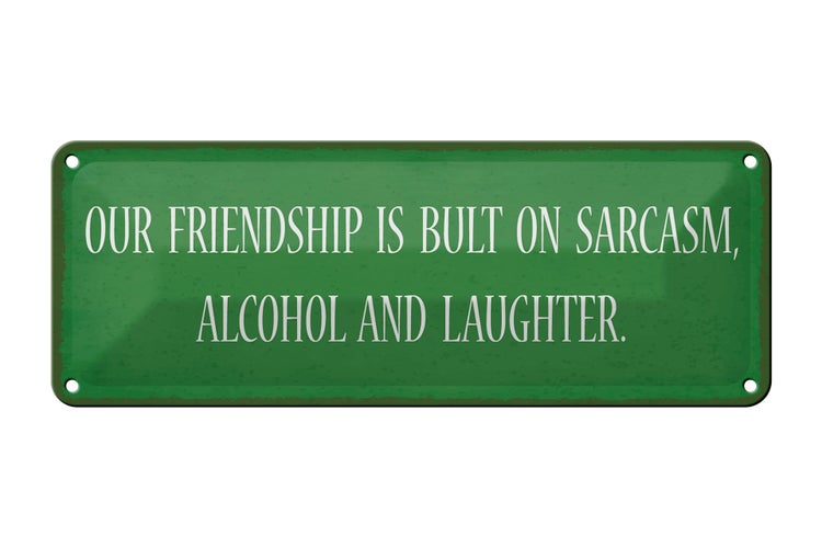 - TitelBlechschild Spruch 27x10cm our friendship is bult sarcasm Dekoration [ORIGINAL BLECHSCHILD von FEMER]