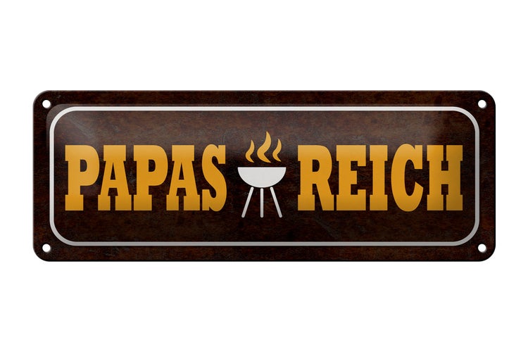 - TitelBlechschild Spruch 27x10cm Papas Reich Grill Dekoration [ORIGINAL BLECHSCHILD von FEMER]