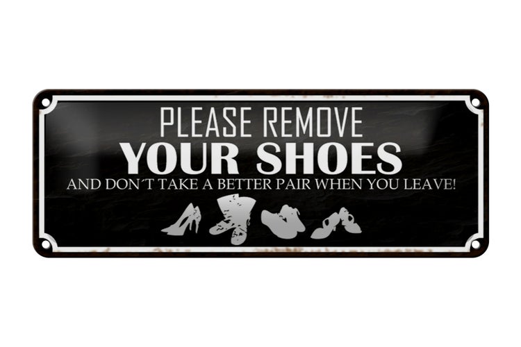 - TitelBlechschild Spruch 27x10cm please remove your shoes schwarzes Schild [ORIGINAL BLECHSCHILD von FEMER]