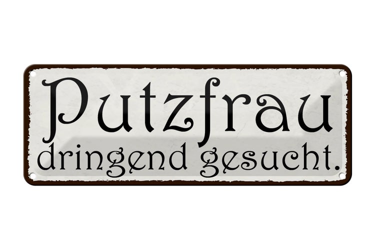 - TitelBlechschild Spruch 27x10cm Putzfrau dringend gesucht Dekoration [ORIGINAL BLECHSCHILD von FEMER]