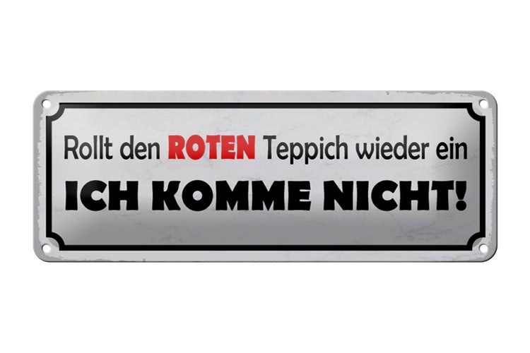 - TitelBlechschild Spruch 27x10cm rollt roten Teppich wieder ein Dekoration [ORIGINAL BLECHSCHILD von FEMER]