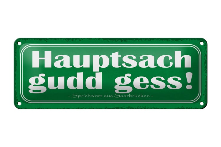- TitelBlechschild Spruch 27x10cm Saarland hauptsach gudd gess Dekoration [ORIGINAL BLECHSCHILD von FEMER]