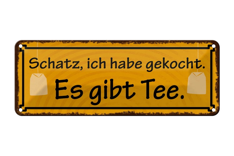 - TitelBlechschild Spruch 27x10cm Schatz ich gekocht es gibt Tee Dekoration [ORIGINAL BLECHSCHILD von FEMER]