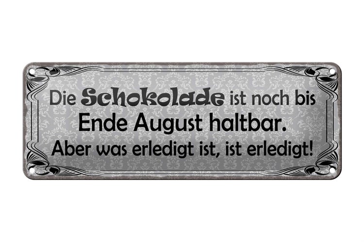 - TitelBlechschild Spruch 27x10cm Schokolade bis Ende August noch Dekoration [ORIGINAL BLECHSCHILD von FEMER]